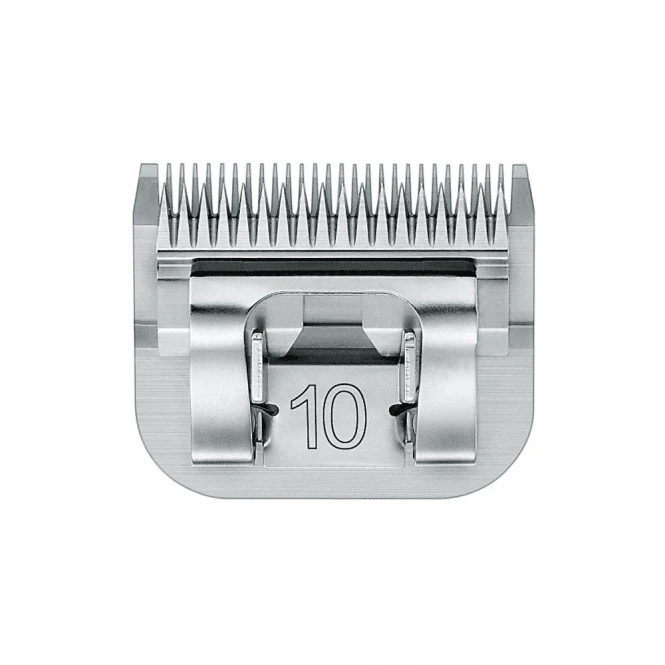 The Aesculap #10 FAV5 Snap-on Blade is a quality replacement blade constructed from carbon steel, honed and shaped by experienced German craftsmen. The blade features an outstanding finish with lasting anti-corrosion protection for ultimate durability. This universal replacement blade is designed for use with the Aesculap FAV5 clipper, but it will also fit any Andis, Oster or Wahl clipper with an A5-style snap-on blade mechanism.