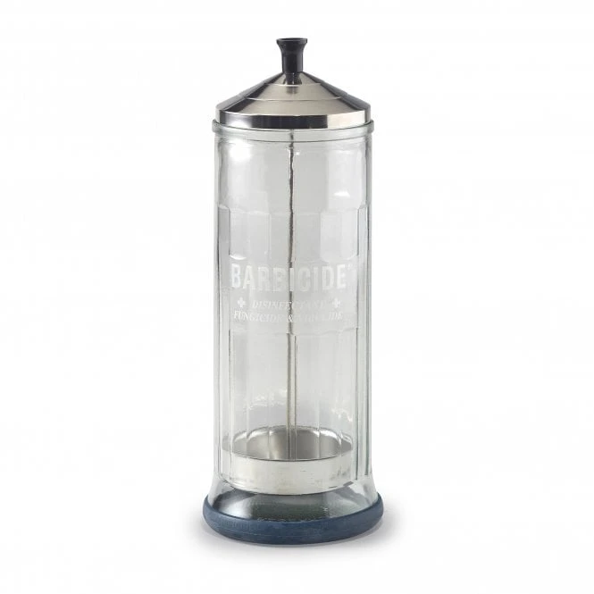 Barbicide Disinfecting Jar makes disinfection of grooming tools easy and convenient. Custom moulded glass with stainless steel basket for easy immersion. The self draining basket makes tool retrieval easy without putting your fingers into the disinfecting solution.