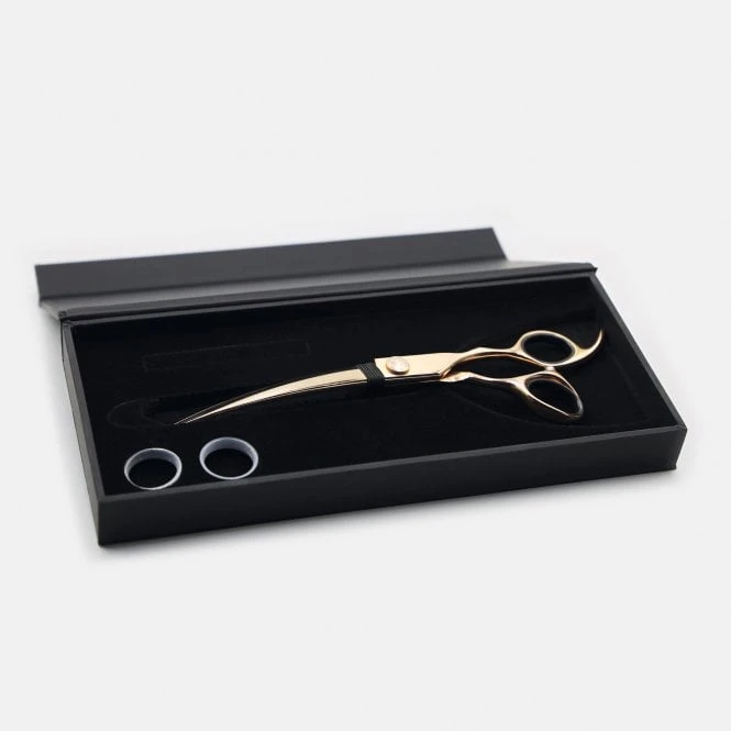 Groomers Premium Aurelia 7.5″ Curved Scissors are perfect for creating a neat and rounded finish on coats, and are especially useful for shaping heads, faces and ears, ribcages, back legs and rounding off feet. Use to shape and finish off your groom effortlessly. Specifically designed for professional groomers with experienced scissoring techniques, and engineered with control and comfort in mind.