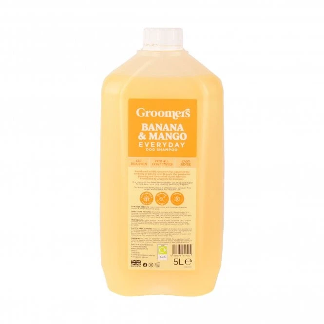 Groomers Everyday Banana & Mango Shampoo has been formulated to thoroughly cleanse, condition and refresh your dog’s coat. Our easy rinse formulation is pH balanced with fabulously fruity fragrance that will leave the coat smelling fresher for longer. Suitable for frequent use on all coat types, our formulations are safe, gentle and non-irritating.