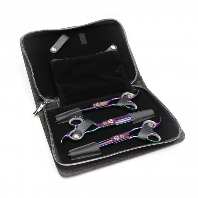 Groomers Rainbow 3 Piece Scissor Gift Set features three irridescent rainbow coloured scissors which have been expertly designed to meet the needs of professional everyday grooming. Crafted from high quality, sturdy stainless steel that offers precision and excellent performance.