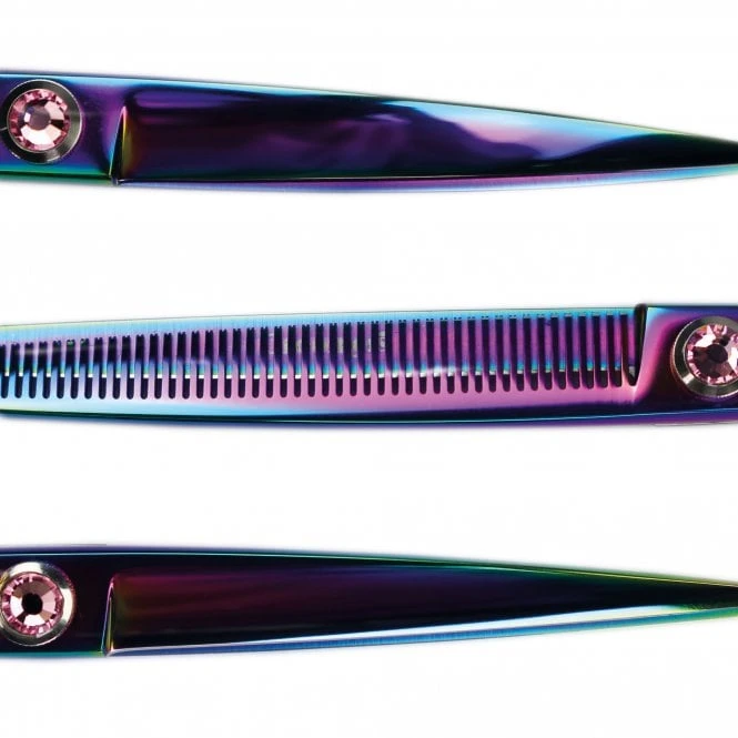 The Rainbow range is a beautifully made collection of rainbow iridescent scissors, crafted from high quality, sturdy stainless steel that offers precision and excellent performance. Ideal for professional groomers wanting to add some class and chic to their scissor collection, these scissors are designed to last and work beautifully through heavy-duty cutting and professional everyday use.