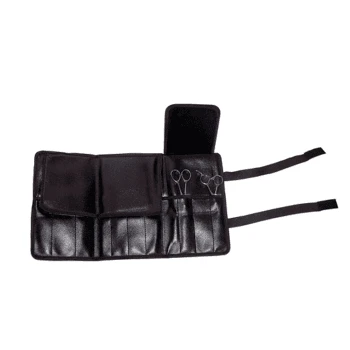 The Scissor Wrap offers a handy way to store dog grooming scissors safely when not in use. This black leatherette wrap has room for up to 10 pairs of scissors. Finished in leatherette , and features an elasticated Velcro closure.