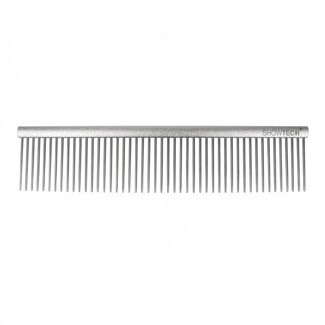 Show Tech+ has developed ergonomic combs that are light as a feather to help alleviate stress in joints and muslces from scissoring. Thanks to the aluminium spine, these combs are the finest and lightest available! To prevent damage to coat and skin, each polished, stainless steel tooth has a rounded tip. This precision tool is designed to take the ordinary scissoring a level higher and allow you to work with a quicker and more precise technique in a fraction of time.