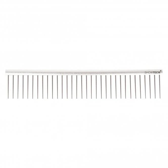 The Show Tech+ Featherlight Professional Comb is the ultimate in professional combs for styling and fluffing. Made from aluminium with polished stainless steel teeth this comb is the finest and lightest available. Each tooth is perfectly formed with a tip rounded to prevent damage to coat and skin.